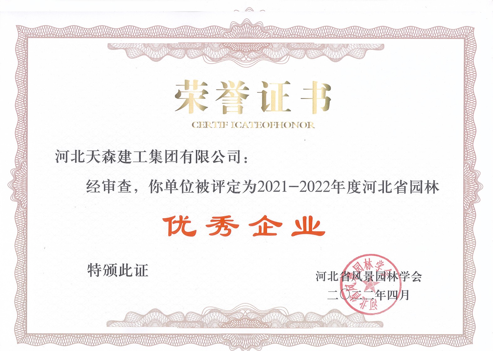 此外公司還榮獲2022年度河北省城市園林綠化行業(yè)誠信企業(yè)AAAAA級稱號、集團公司被授予2021-2022年度河北省十佳園林企業(yè)、集團公司被評定為2021-2022年度河北省園林優(yōu)秀企業(yè)。